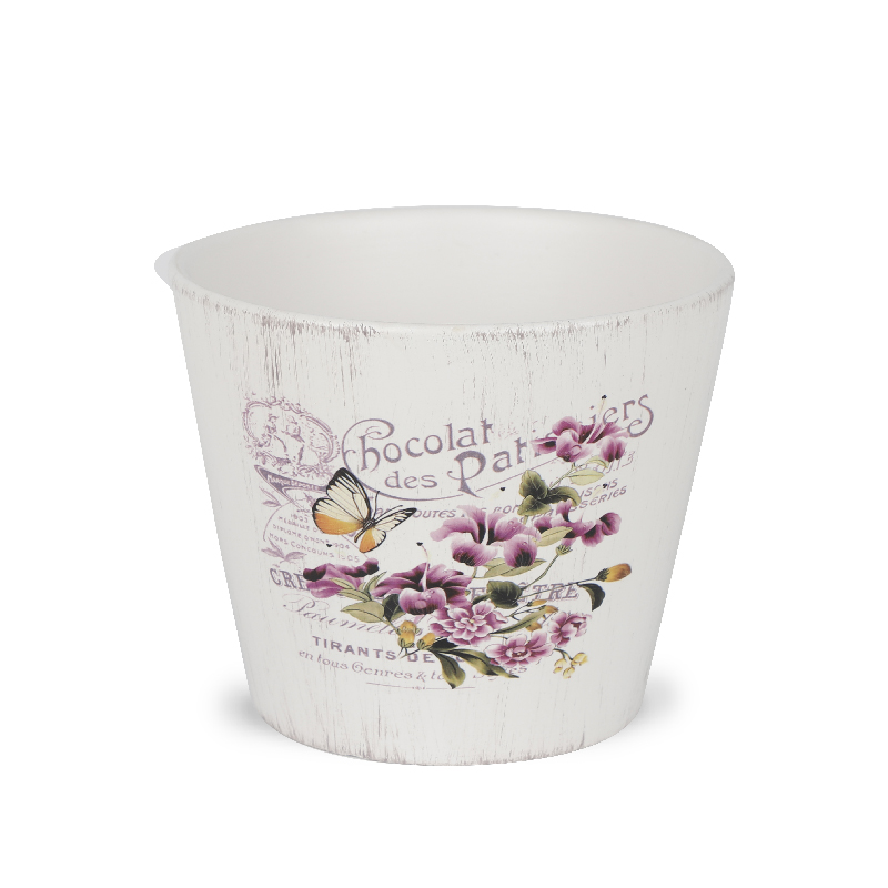 Vintage decorative planter with beautiful floral pattern. Easily punch or drill a hole in them at bottom center for drainage if needed.
