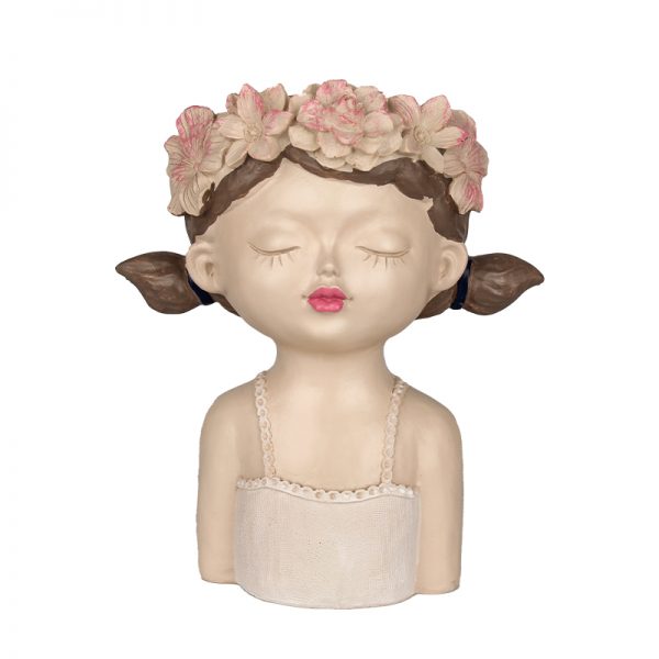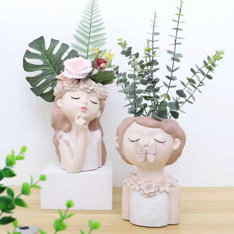 Made of high quality resin. Cartoon girl flowerpot is perfect for mini succulent plants and cactus or decorative candles. An attractive planter makes your shop unique.