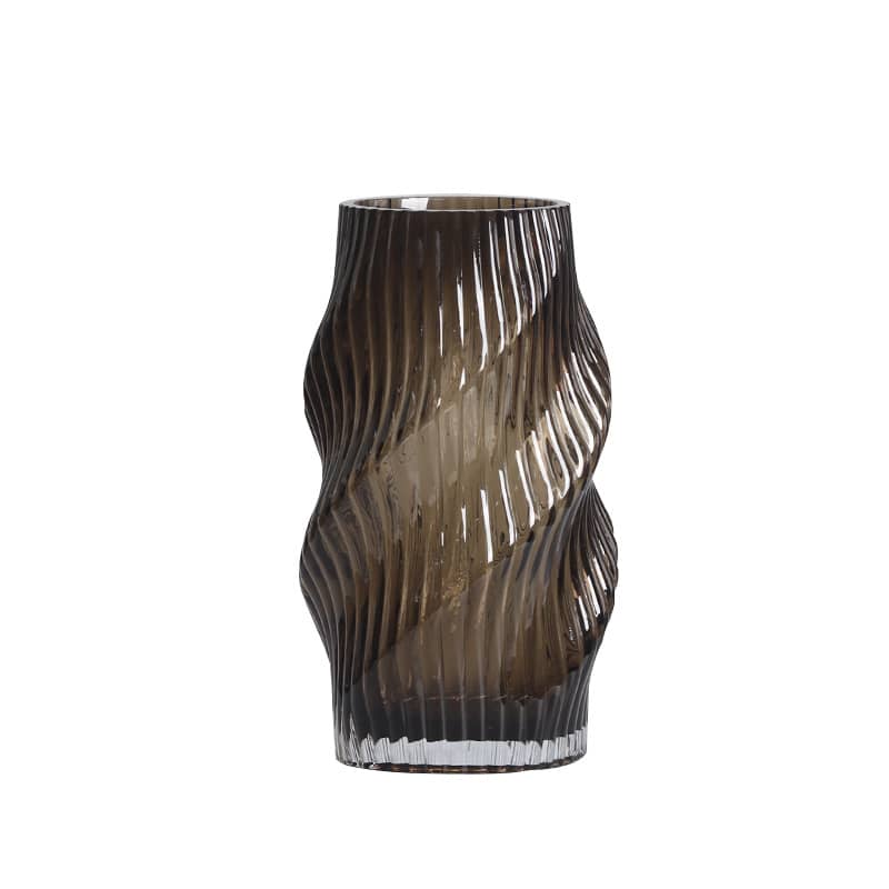 This twisted glass vase creating a unique and decorative appearance. It can accommodate a variety of floral arrangements and seamlessly complements any interior style.